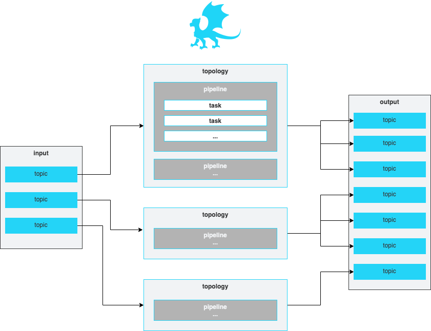 groupsetting) and enabled topologies. Each topology reads from a single source topic, runs one or more pipeline(s), and writes the resulting outputs to one or more output topic(s). Each pipeline consists of one or more task(s) where each task can perform a filter, transform, enrichment, or detection (rules) function. Please see below for details on concepts.